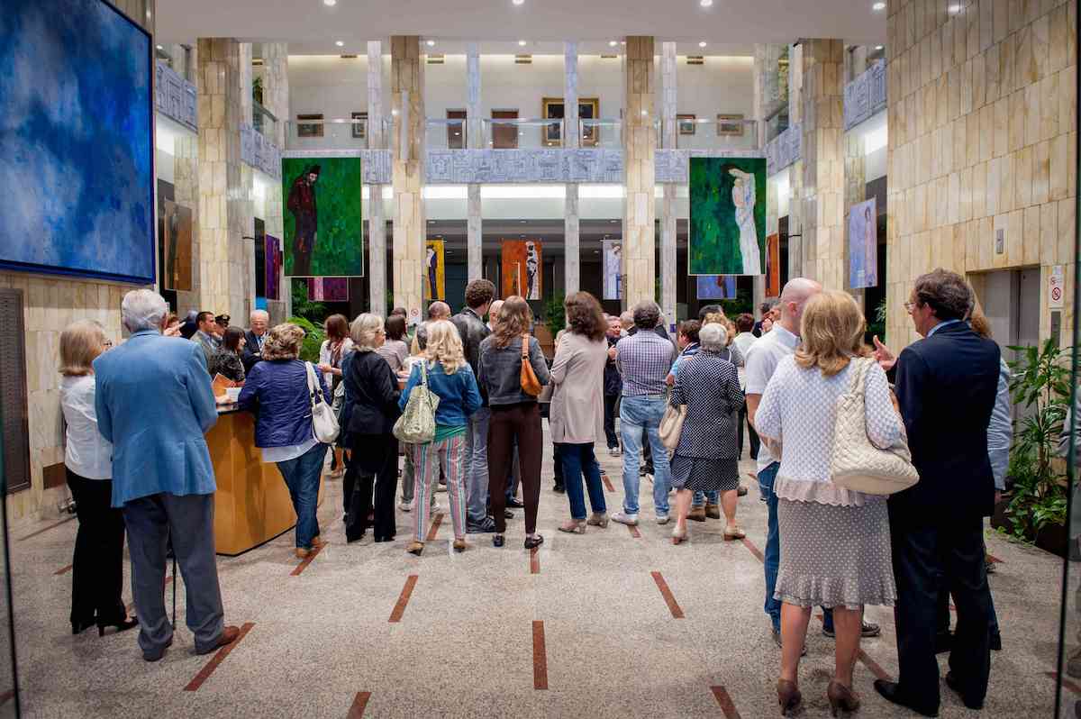 Vorrei rimarcare lo straordinario apprezzamento che la gente riservò, nell’estate 2014, ad Humana Pictura, presentata nel Salone Principale della Banca in un allestimento “volante” volutamente atipico che, richiamando gli stendardi delle parate popolari dei giorni di festa, avvolgeva completamente il foyer e lo convertiva in una vivace piazza comunicante con l’esterno – in sintonia con lo spirito di apertura della nostra Fondazione – creando un luogo dove poter vivere (e condividere) momenti di serenità e di riflessione.