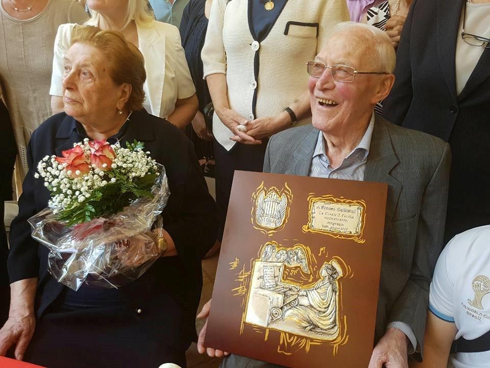 Giornata di festa domenica 11 giugno a Leffe, dove la locale Corale S.Cecilia ha festeggiato Franco Gallizioli, che da ben 81 anni presta servizio nella formazione parrocchiale. Un uomo che ha dedicato un’intera vita all’animazione liturgica ed al canto, ricoprendo per 30 anni anche il ruolo di segretario e dimostrando capacità, passione e costanza. La Corale “S. Cecilia”, si è riunita con il parroco don Giuseppe Merini ed il presidente Giancarlo Zambaiti, per festeggiare gli 81 anni di servizio di Franco come cantore, prima in qualità di fanciullo nei “pueri cantores”, poi di tenore e attualmente di basso. Gallizioli continua ancora il suo impegno nella Corale, e si augura “che anche nei giovani continui questa passione per la musica sacra”.
