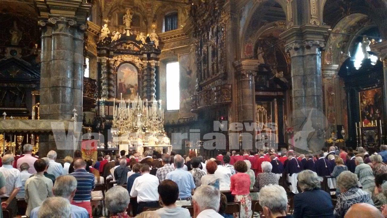 Folla di fedeli a Gandino per la tradizionale processione del Corpus Domini, che ha attraversato il centro storico dominato da zandaline, altari e antichi drappi. Messa e processione presiedute da don Gustavo Bergamelli, rettore del Seminario di Bergamo.