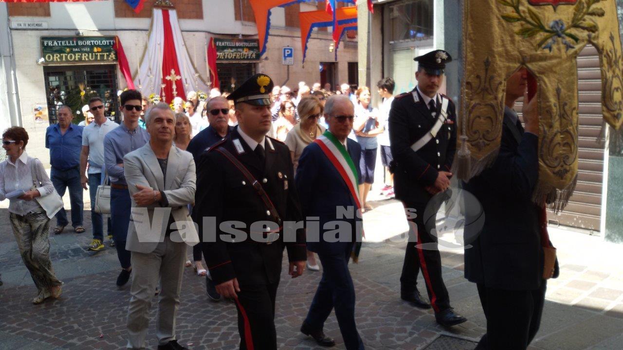 Il lunghissimo, infinito corteo processionale ha proposto le divise multicolori delle Confraternite, le note della Corale Canali e quelle del Civico Coprpo Musicale, ma anche angeli, paggetti, bambini della prima comunione, stendardi e crocifissi. Per questa solennità, i sacerdoti vestono paramenti in broccato d’oro e argento prodotti a Lione nel 1768. Il baldacchino è uno splendido ganzo veneziano del primo ‘700. L’ostensorio gotico (una vera rarità) richiama le forme di una cattedrale gotica e pesa circa 12 chilogrammi. fu acquistato in Baviera nel 1527 dai mercanti gandinesi, quando raggiungevano quelle terre per venderei loro pannilana. Oro, argento e sete simboleggiano luce e regalità proprie dell’Eucarestia. In basilica e lungo il corteo a scortare il gonfalone comunale era presente al completo l’amminstrazione comunale da poco insediata. Il sindaco Elio Castelli era affiancato dal maresciallo Francesco Ciaco, dalla scorsa primavera a capo della stazione Carabinieri di Gandino.