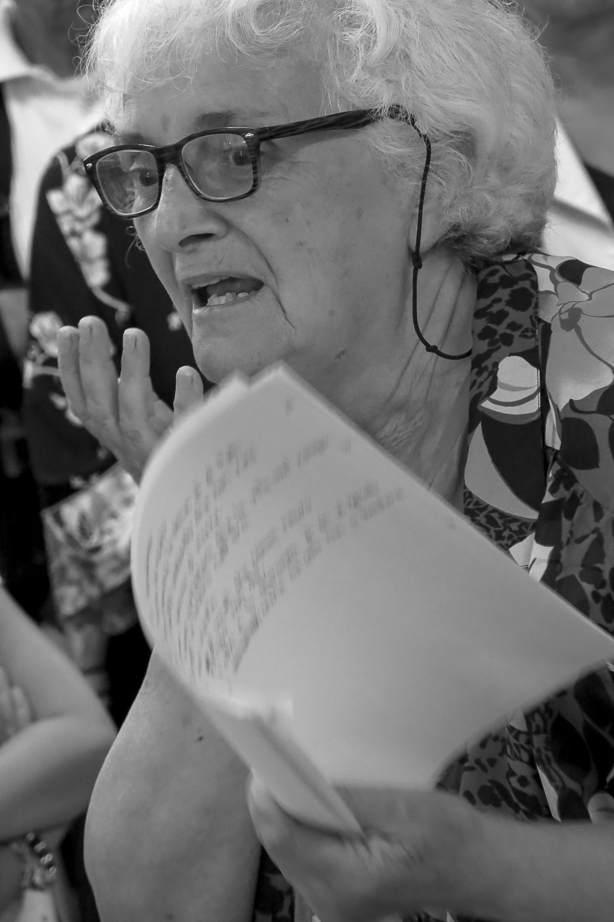 L’autrice Sandra Saite affezionata di Valbondione da 50 anni, a Milano è volontaria nell’ospedale psichiatrico del Niguarda e scrive per una rivista locale “Zona Nove”; cara amica degli artisti Brunella e Cicci, ha proposto 7 poesie che sono state accompagnate dalla musica di Gianmario Conti – artista poliedrico di Valbondione – con arpa e armonica a bocca, per un emozionate momento musicale.