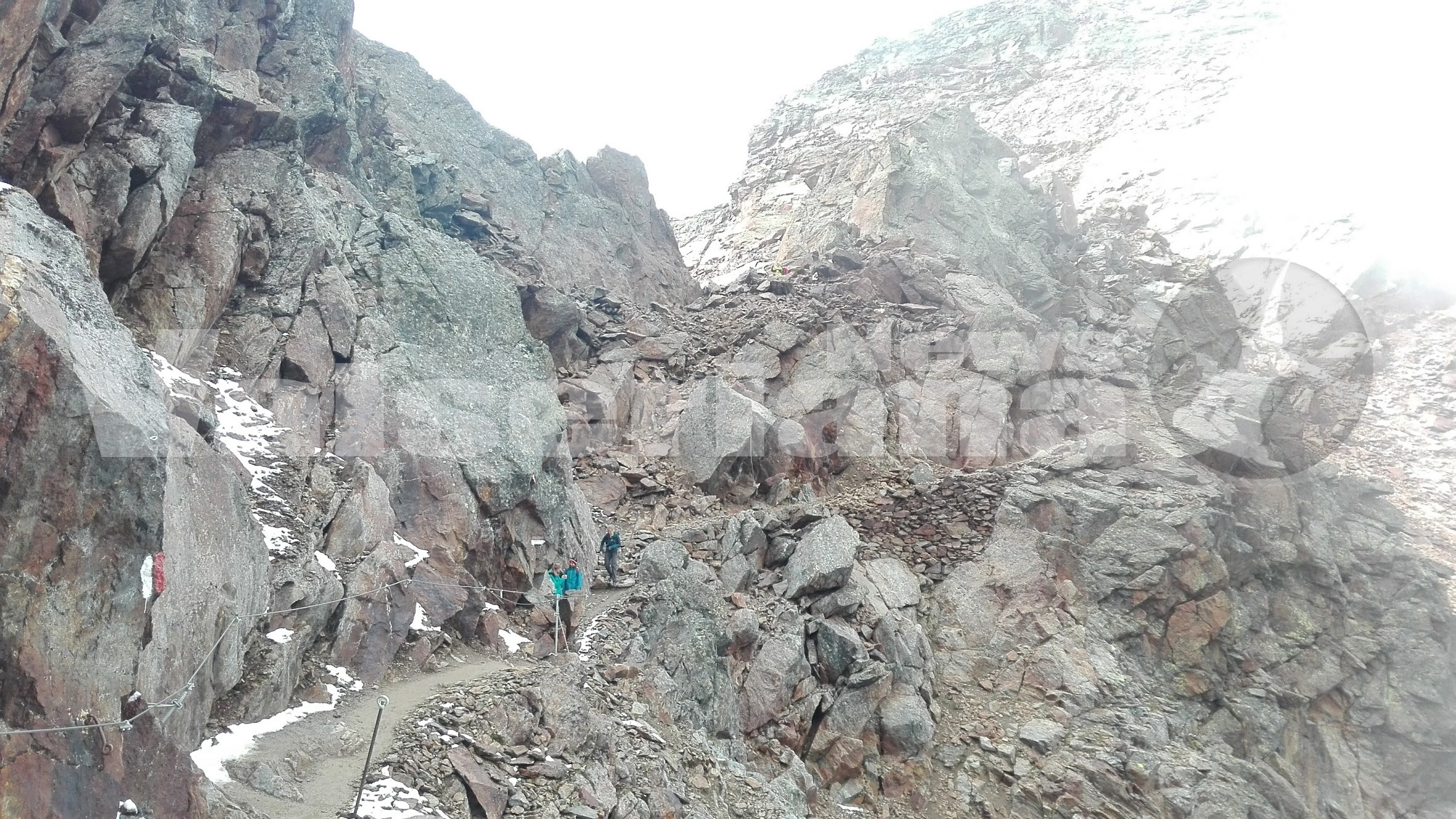 Per la discesa consigliamo lo stesso percorso di salita. Il periodo consigliato da giugno a settembre, munirsi di ramponi e picozza per eventuale presenza di neve.