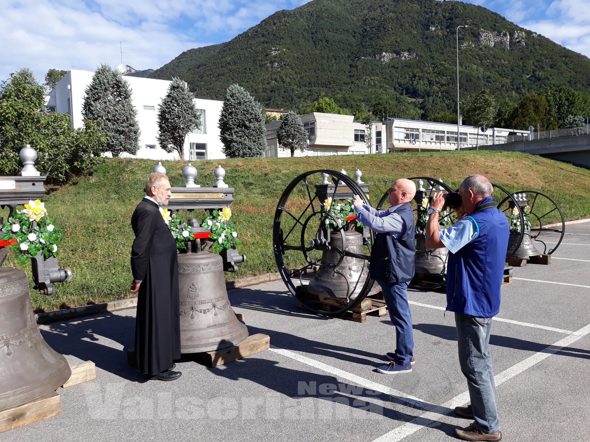 A Desenzano di Albino benedette le otto campane della parrocchiale, tornate in paese dopo il restauro. Lunedì 4 settembre torneranno sul campanile.