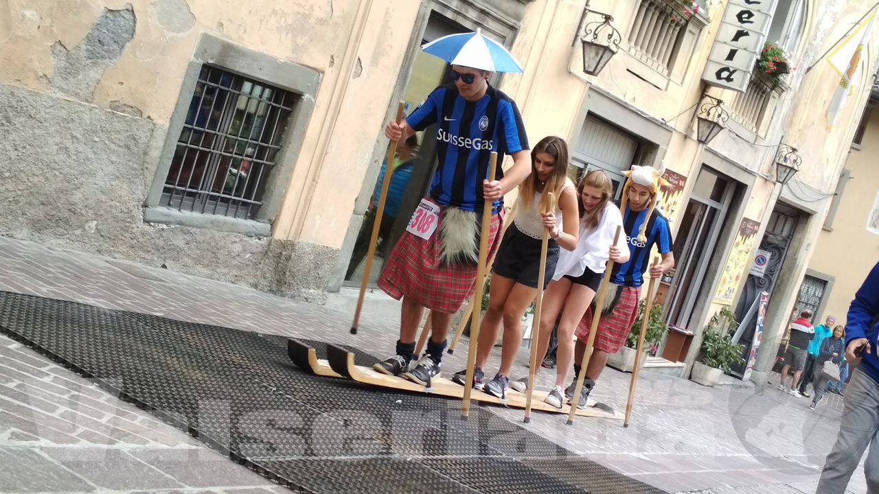 A Clusone va in scena la pazza sciata su assi di legno – foto