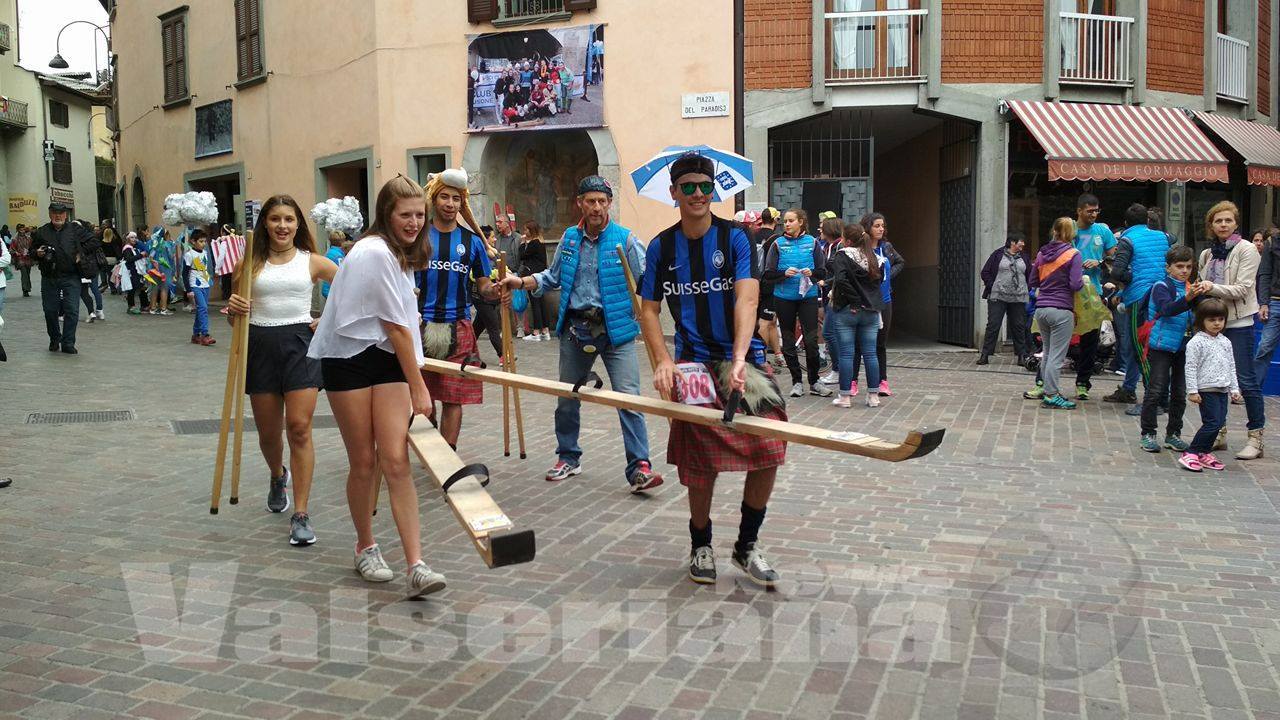 Pomeriggio tra colori e divertimento a Clusone con la pazza “Sci Ass 13”, la sciata su assi di legno organizzata dallo Sci club 13 Clusone.