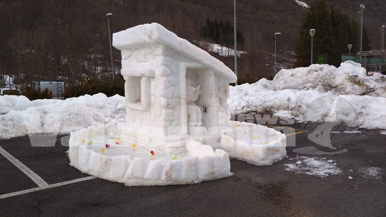 Sei squadre di scultori si sono affrontate in questo fine settimana a Valbondione in una gara di scultura di cubi di neve della grandezza di 6 metri cubi. Il tema da rappresentare era: “La magia del rifugio nel regno della Neve”.