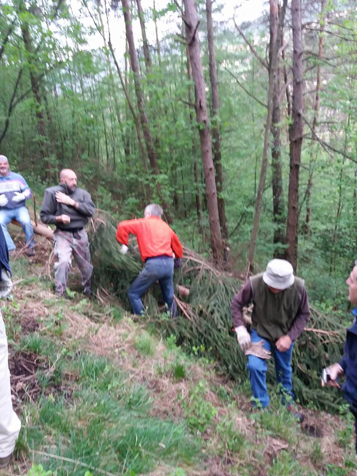 Lo scorso 15 aprile i Soci del Mas di buon mattino si sono recati nei boschi sopra la frazione Bani di Ardesio per il taglio dell’abete, ieri circa 60 fra giovani e meno giovani, lo hanno trascinato lungo il ripido pendio per poi innalzarlo a spari di mortaretti a fianco della Madonna.