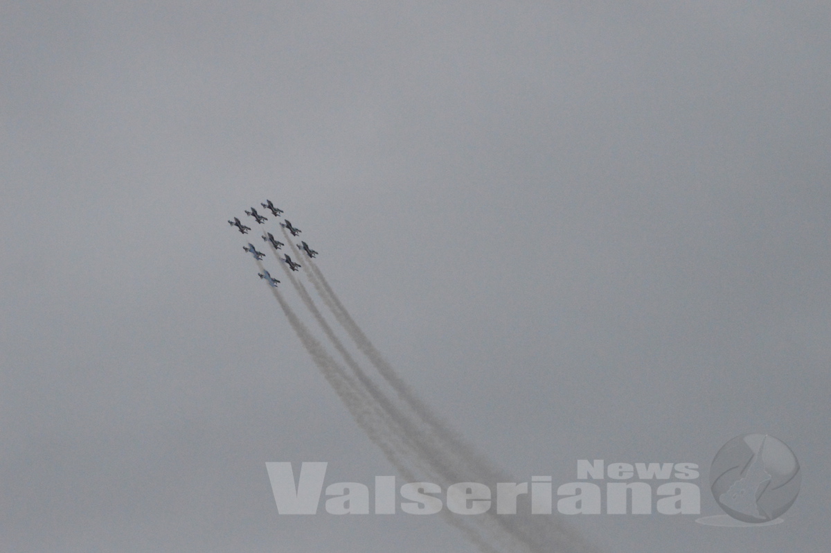 Nonostante alcune esibizioni aeree siano state annullate per questioni di sicurezza, la Pattuglia Acrobatica Nazionale delle Frecce Tricolori ha sorvolato il cielo di Lovere poco dopo le 15 come da programma.