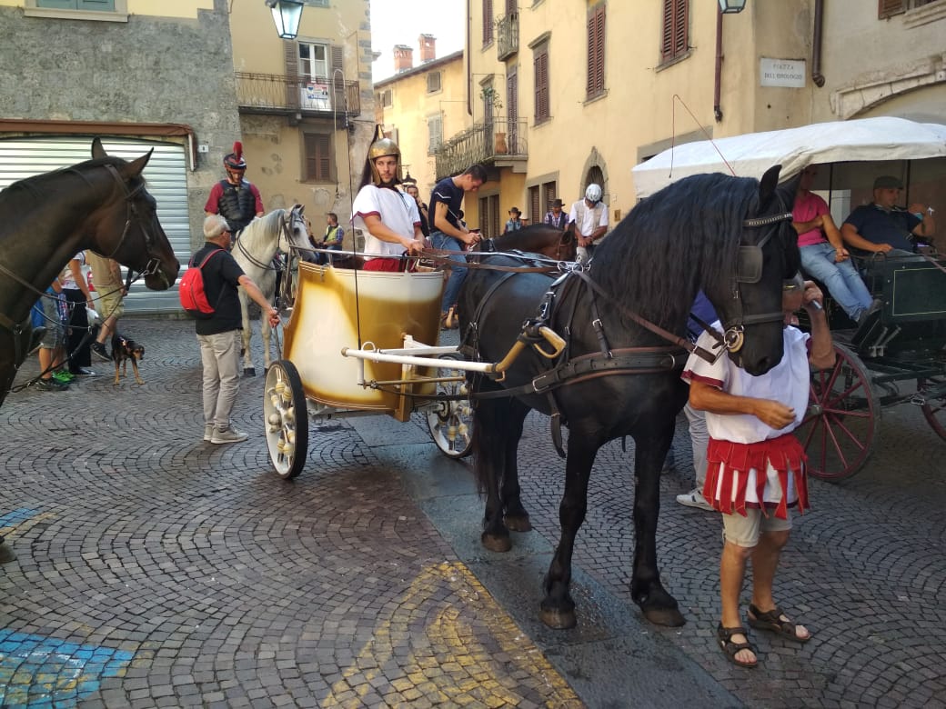 Cavalli e fantini protagonisti questa domenica mattina 23 settembre a Clusone, in occasione della fiera zootecnica in programma sull’altopiano dal 22 al 24 settembre.