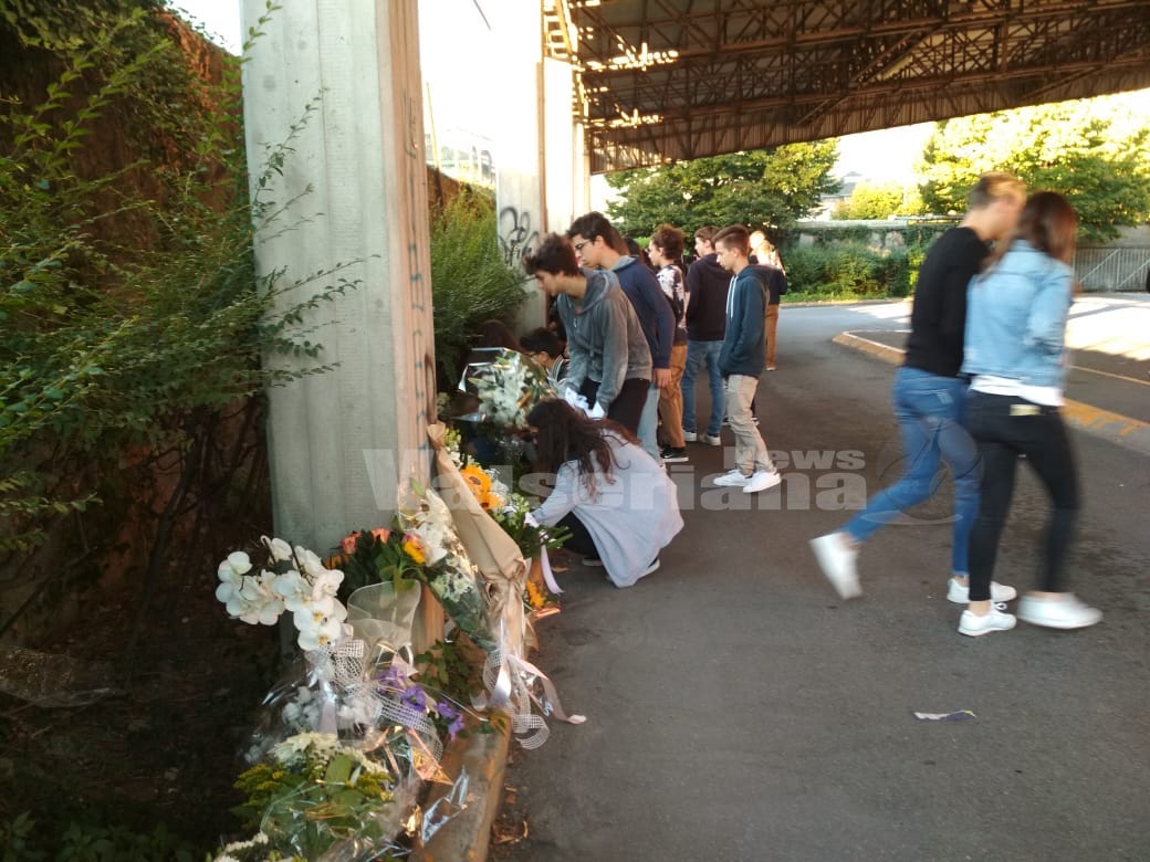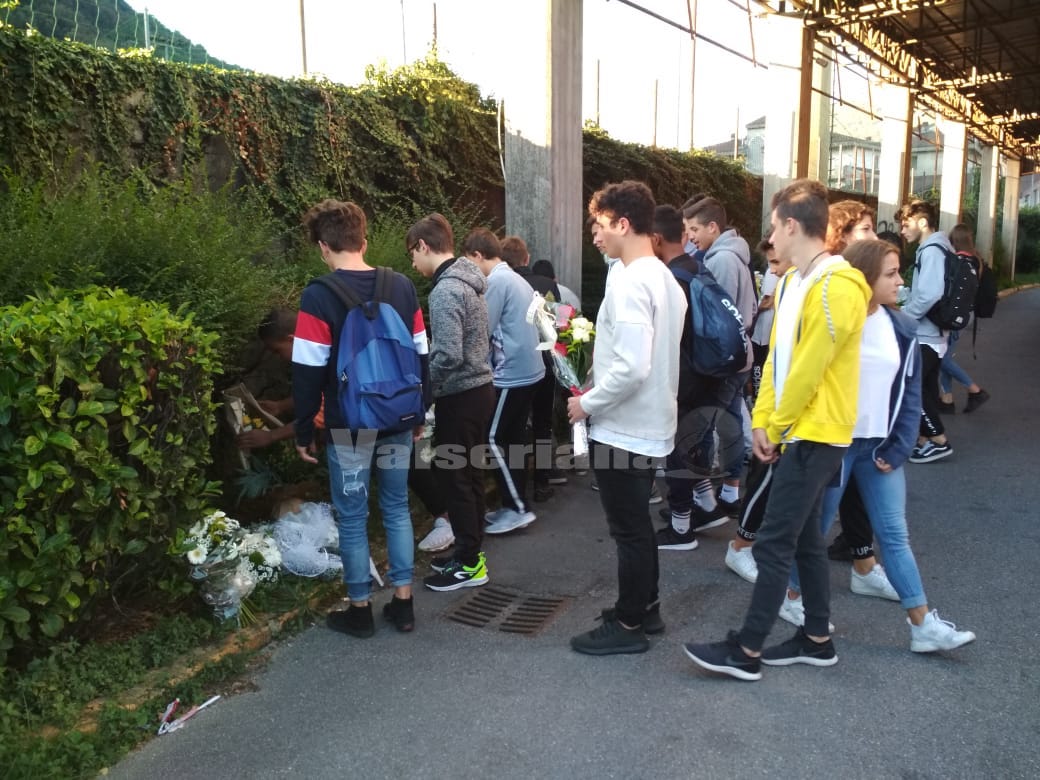 Nel giorno del funerale di Luigi, gli studenti dell’ISISS di Gazzaniga depongono dei fiori sul luogo dell’incidente, lanciano dei palloncini e piantano un ulivo in memoria del 14enne.