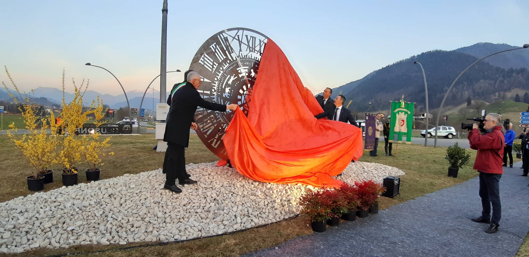 E’ stato inaugurato nella serata di oggi venerdì 22 marzo a Clusone, il monumento di “Benvenuto” dedicato all’orologio Planetario Fanzago. L’opera, voluta dal Lions Club Città di Clusone, è stata realizzata dall’artista di Gorno Umberto Gamba.