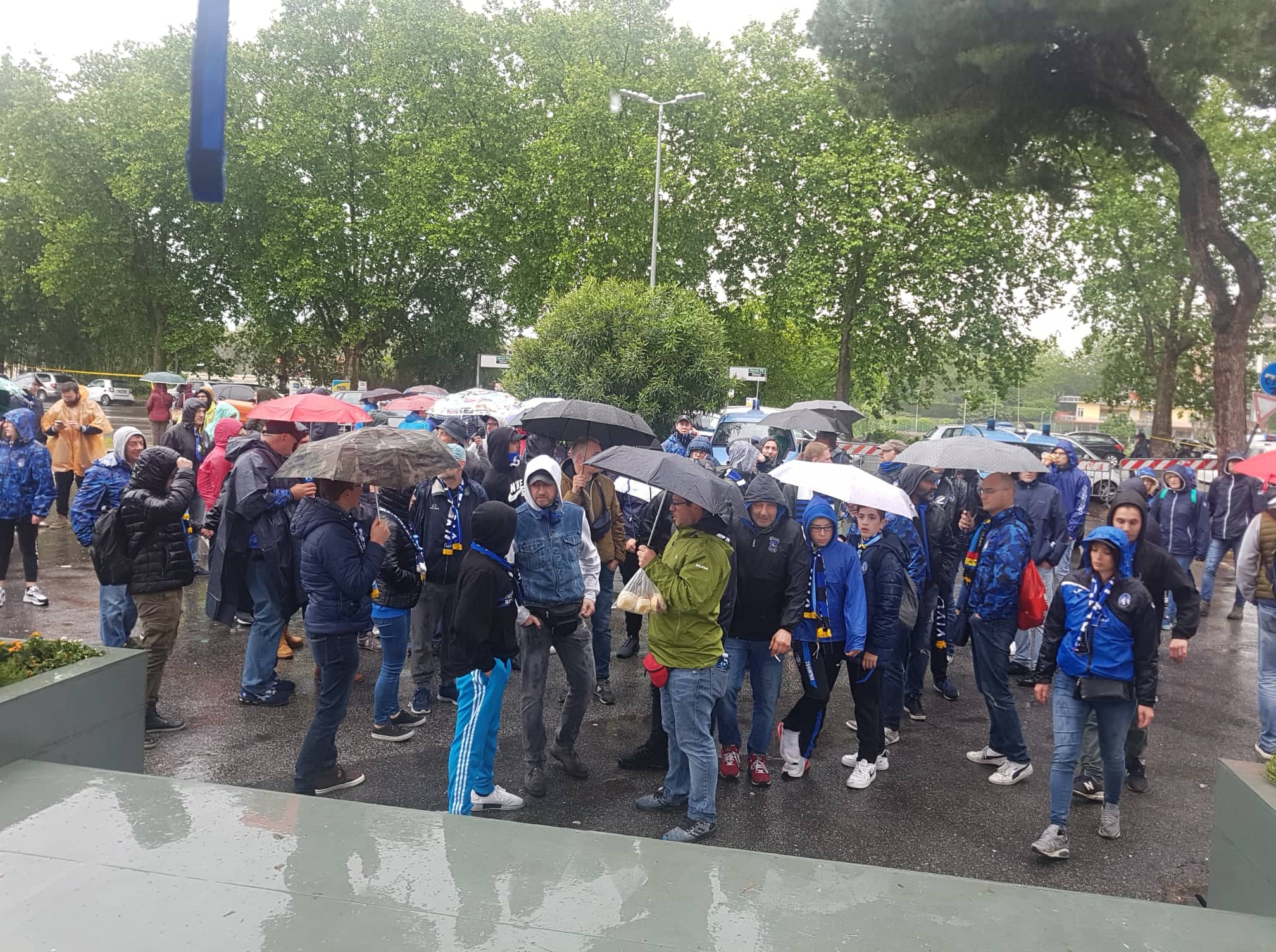 A farci da corrispondente un tifoso di Gandino, Paolo Moro, che ci racconta: “Siamo partiti questa mattina alle 6 da Bergamo con 12 pullman. Il viaggio è andato bene con diverse soste a base di salame e formaggella. Finalmente attorno alle 17.30 siamo entrati nello Stadio Olimpico sotto la pioggia ma neanche il maltempo ci fermerà, siamo fiduciosi”.