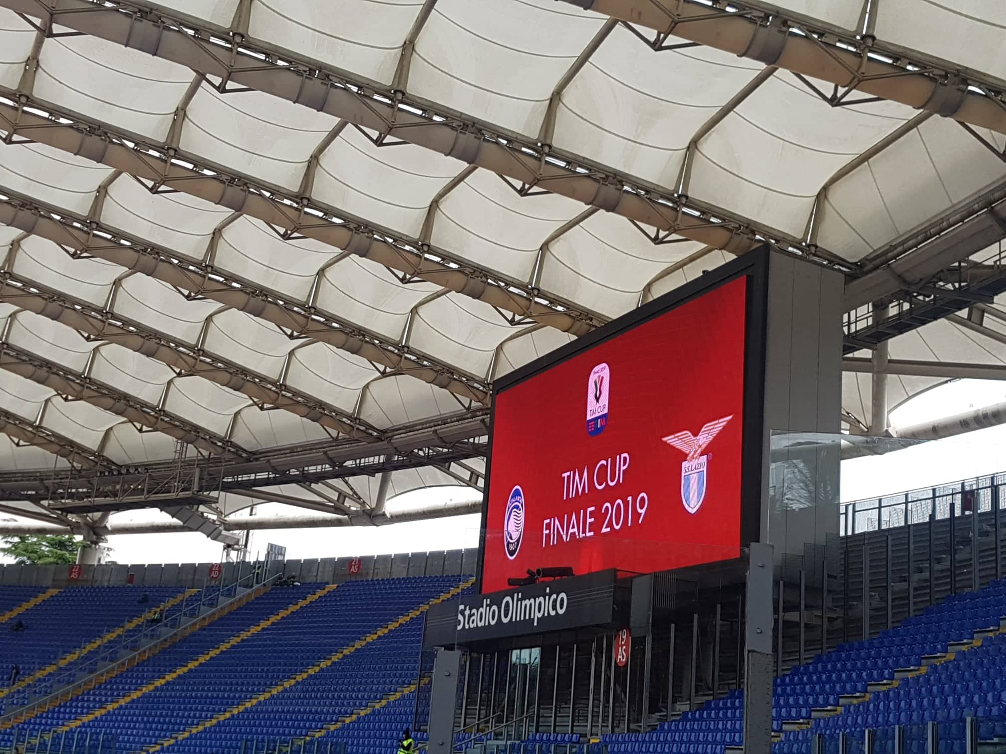 I tifosi atalantini prendono posto allo Stadio Olimpico, conto alla rovescia per il fischio d’inizio della finale di Coppa Italia. Maxi schermo a Clusone.