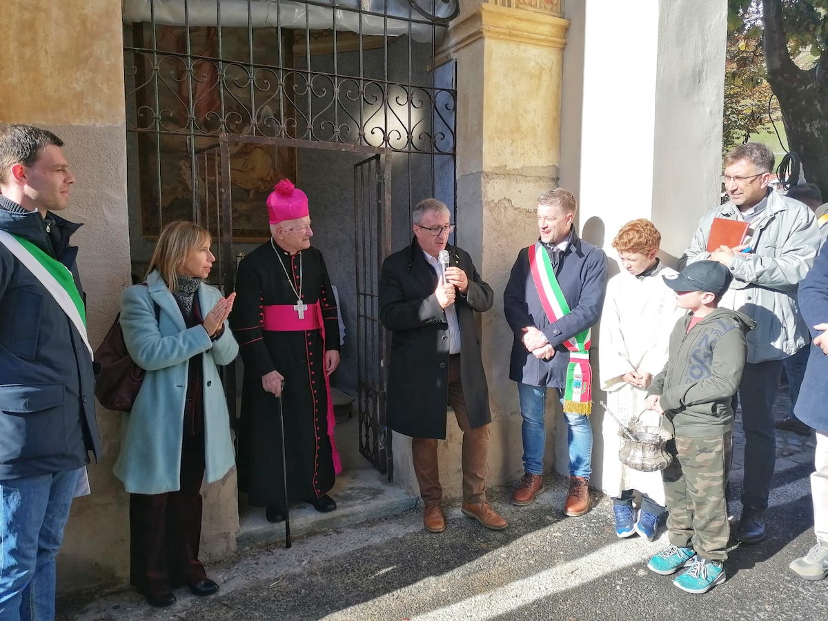 Monsignor Gaetano Bonicelli, prima di dare la benedizione alla cappella restaurata ha sottolineato l’importanza del ricordo dei caduti della Prima e della Seconda Guerra Mondiale.
