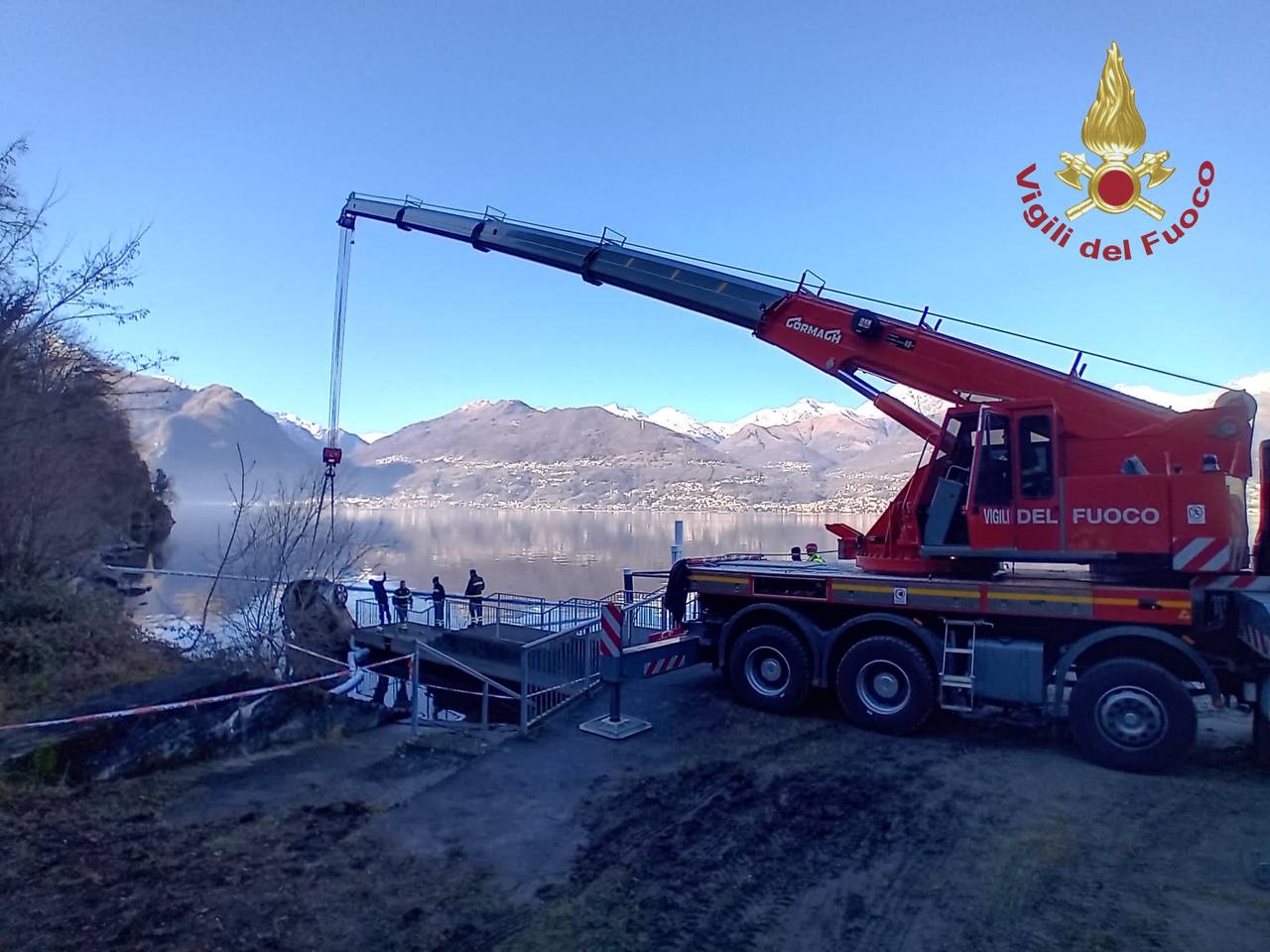 Auto nel lago di Como: incidente mortale, mezzo recuperato dai vigili del fuoco di Bergamo