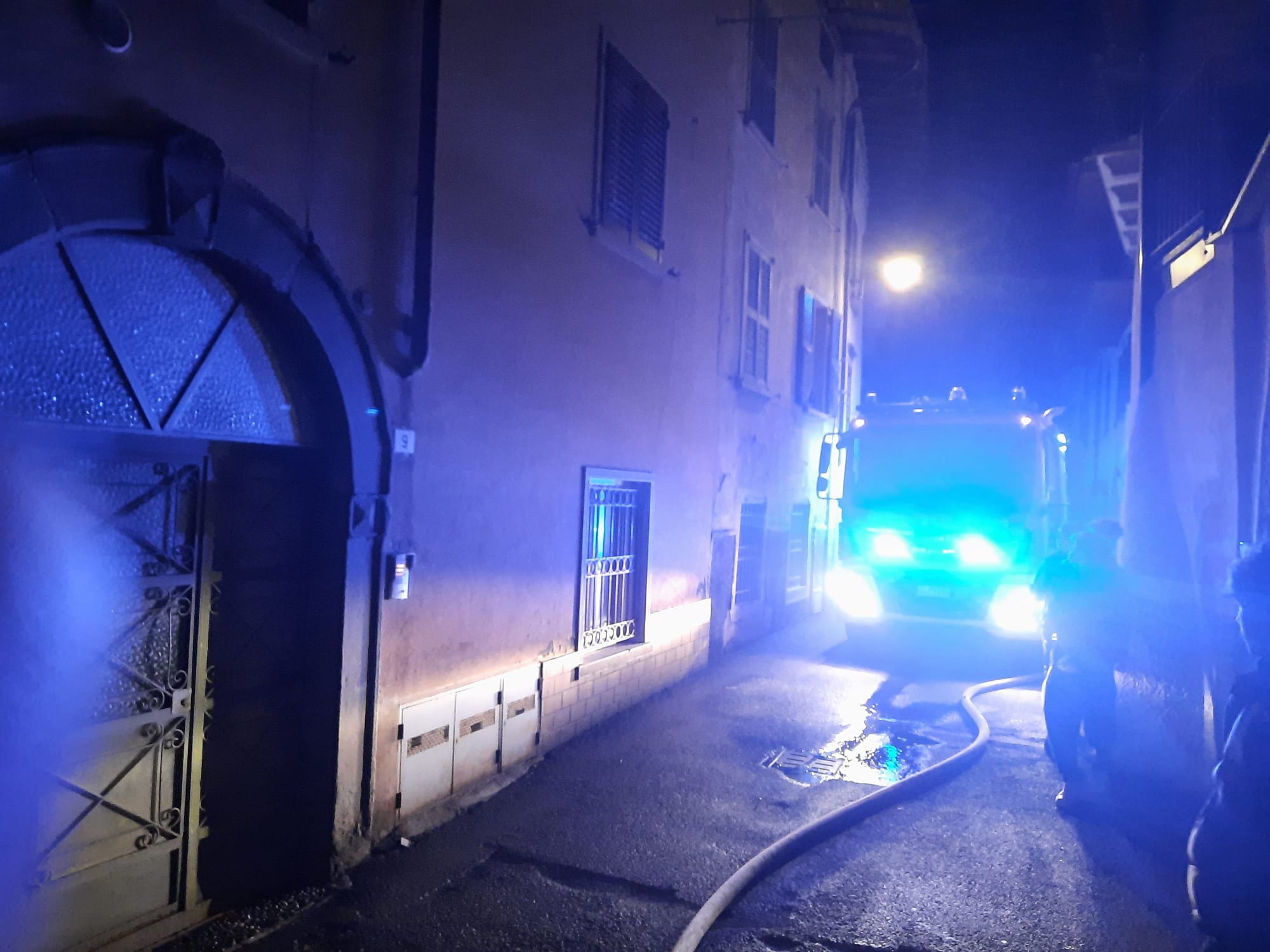 Fiamme in una casa disabitata in centro a Gandino