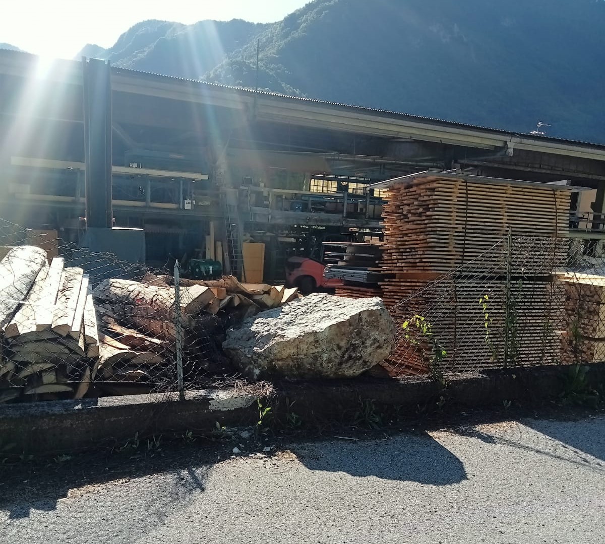 Massi sfondano la recinzione della segheria a Villa d’Ogna, chiusa la provinciale – Foto