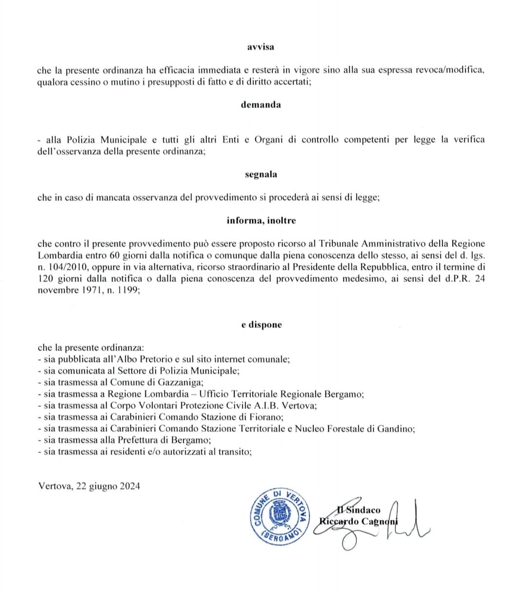 “Fortunatamente non sono state coinvolte persone – spiega il sindaco Riccardo Cagnoni -. Una donna residente in un’abitazione a cui è stato scoperchiato il tetto, è stata trasportata in pronto soccorso per il trauma ma tutti i residenti stanno bene. Abbiamo 72 ore di tempo per chiedere lo stato di calamità naturale a Regione Lombardia. Intanto invitiamo i residenti e visitatori a non accedere alla strada della Valle Vertova a causa dei danni provocati dal forte maltempo”. Va precisato che l’accesso pedonale all’area naturalistica della Valle Vertova è già vietato dopo la frana dello scorso settembre.