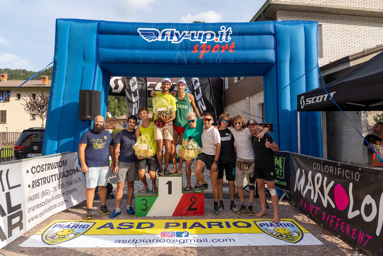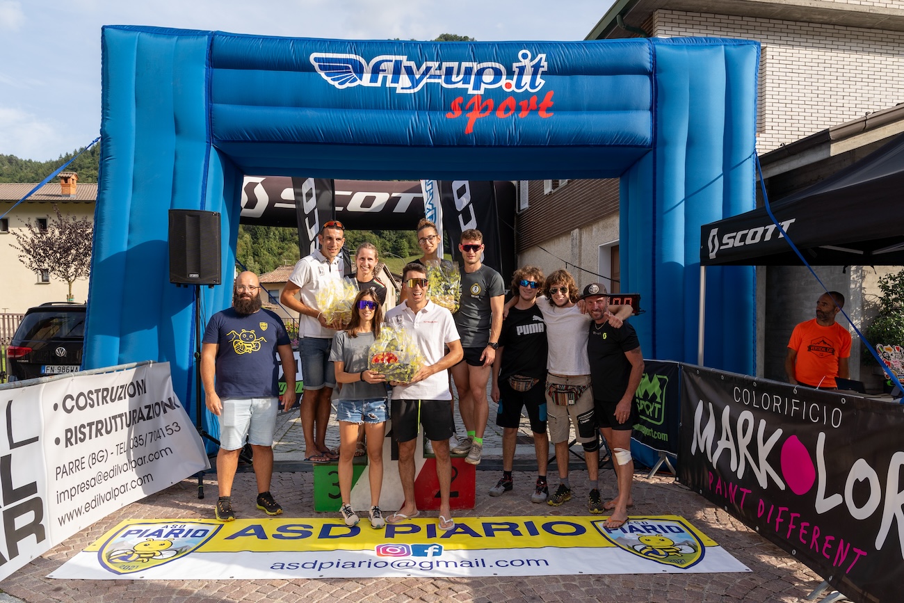 4 km di sviluppo e 350 metri di dislivello da affrontare a tutta da entrambi i componenti del team: è questa la Sapél Né UP & DOWN, competizione ideata nel 20203 dalla ASD Piario in collaborazione con la Fly-Up Sport in memoria compaesano Mario Visini. Il tracciato, identico a quello dello scorso anno, partiva da Piazza Luigi Micheletti a Piario per arrivare sino alla croce del monte Né, 350 metri più in alto. 4 km in tutto tra asfalto e sterrato (1 km su strada e 3 lungo sentieri boschivi), su tracciato veloce nella prima parte, tecnico e leggermente esposto nella seconda, che i due componenti di ogni team hanno affrontato interamente e a tutta.