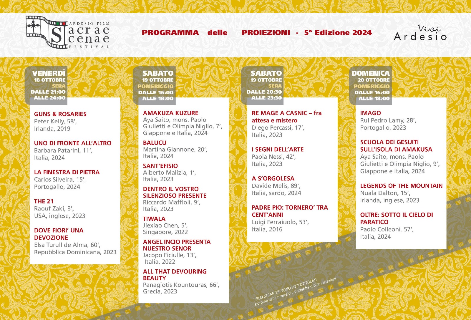 ARDESIO – Tutto pronto per la quinta edizione del Festival Cinematografico internazionale «Sacrae Scenae – Ardesio Film festival» che si terrà ad Ardesio dal 17 al 20 ottobre 2024. Sono 20 le