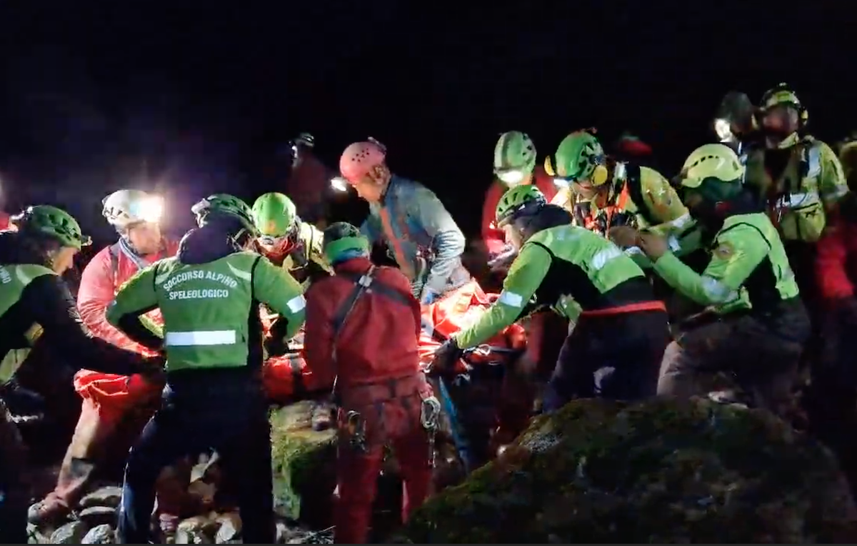 Alle ore 2:59 del 18 dicembre i soccorritori sono usciti dalla grotta Abisso Bueno Fonteno con la barella con la speleologa Ottavia Piana