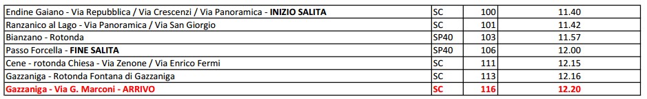 Le tabelle cronometriche prevedono solo due percorsi Kürt e Mèzz, perchè il percorso lungo essendo in formula randonnèe NON prevede la chiusura stradale. Come precisazione il percorso Lonk godrà della chiusura stradale solo fino a Clusone, dove appunto il circuito lonk si separa dal Mèzz.