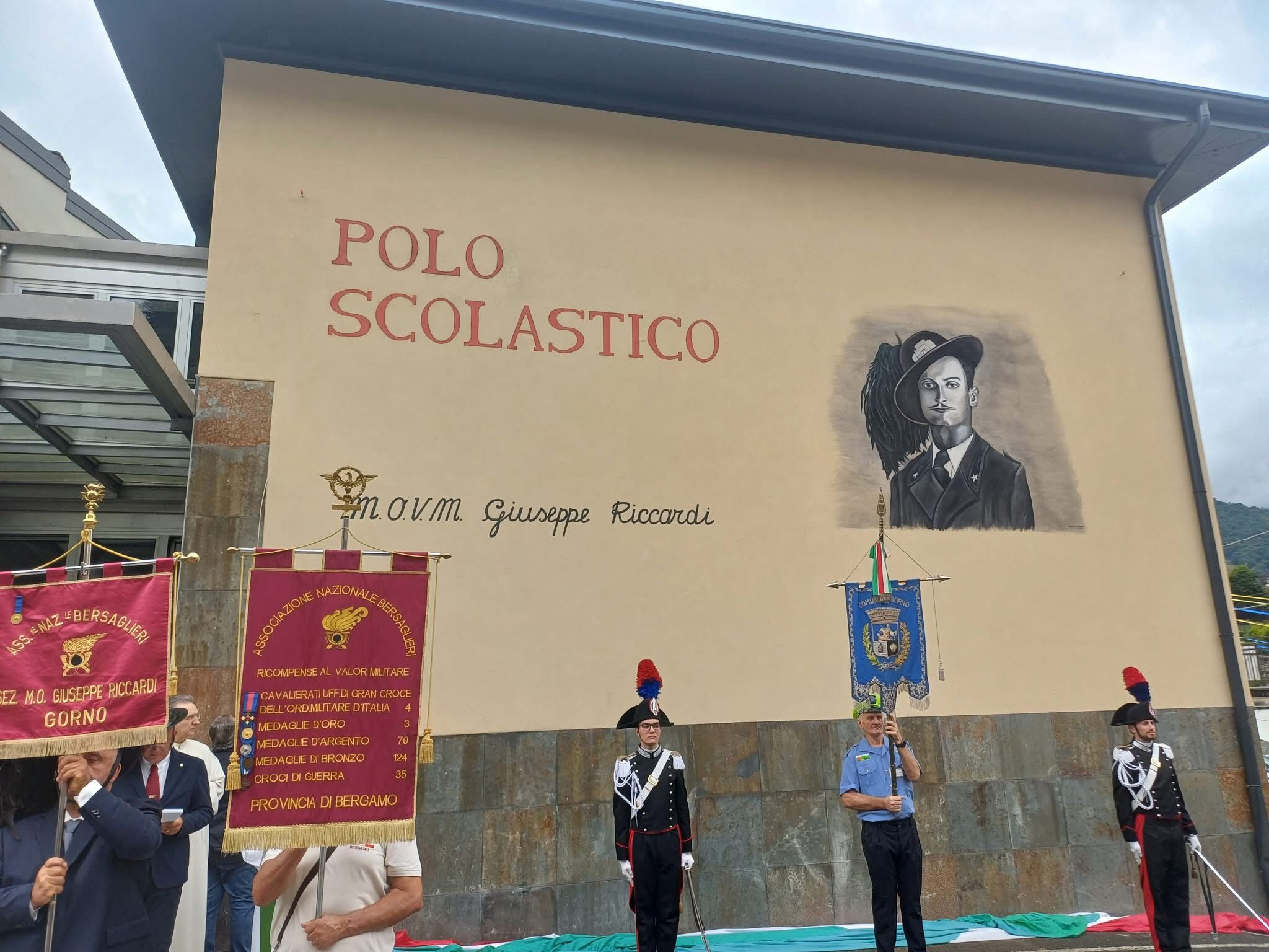 Durante la cerimonia principale si è tenuto lo scoprimento e la benedizione del Monumento al Bersagliere, oltre all’intitolazione del polo scolastico di Gorno alla memoria di Giuseppe Riccardi. La nuova postazione dove è stato collocato il busto, è stata inaugurata all’ingresso del polo scolastico. A completare l’omaggio visivo e simbolico, anche un dipinto murale realizzato da Angelica Guerinoni sulla facciata dello stabile scolastico.