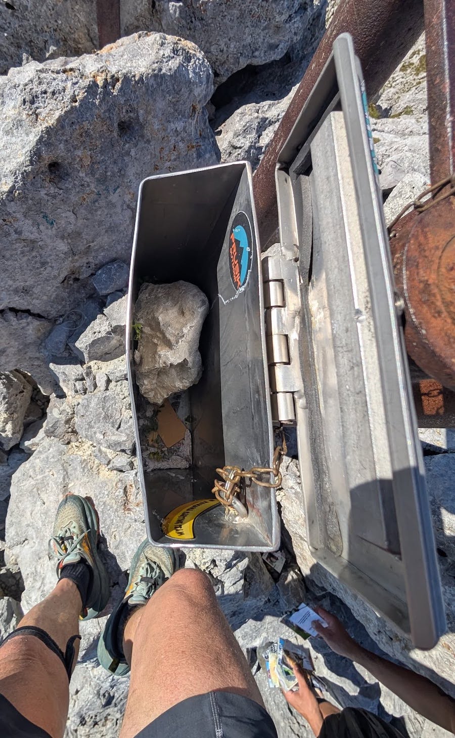 Non finisce qui. Il libro di vetta – in cui gli escursionisti lasciano pensieri e testimonianze del proprio passaggio – è stato strappato in mille pezzi e gettato via. Nel contenitore che lo custodiva, è stato infilato con forza un grosso sasso, in modo da impedirne la sostituzione.