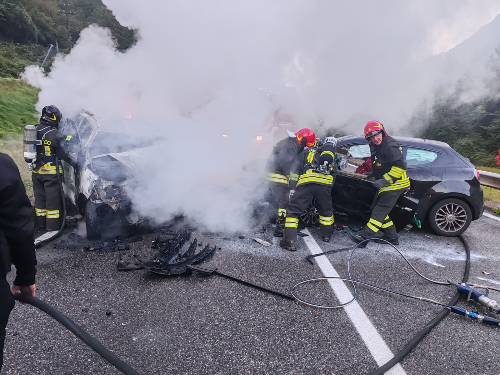 Da Bergamo è intervenuto l’elisoccorso; sul posto anche l’automedica e due ambulanze della Croce Verde di Colzate e della Croce Rossa di Alzano Lombardo. Operativi i vigili del fuoco di Bergamo e Gazzaniga.