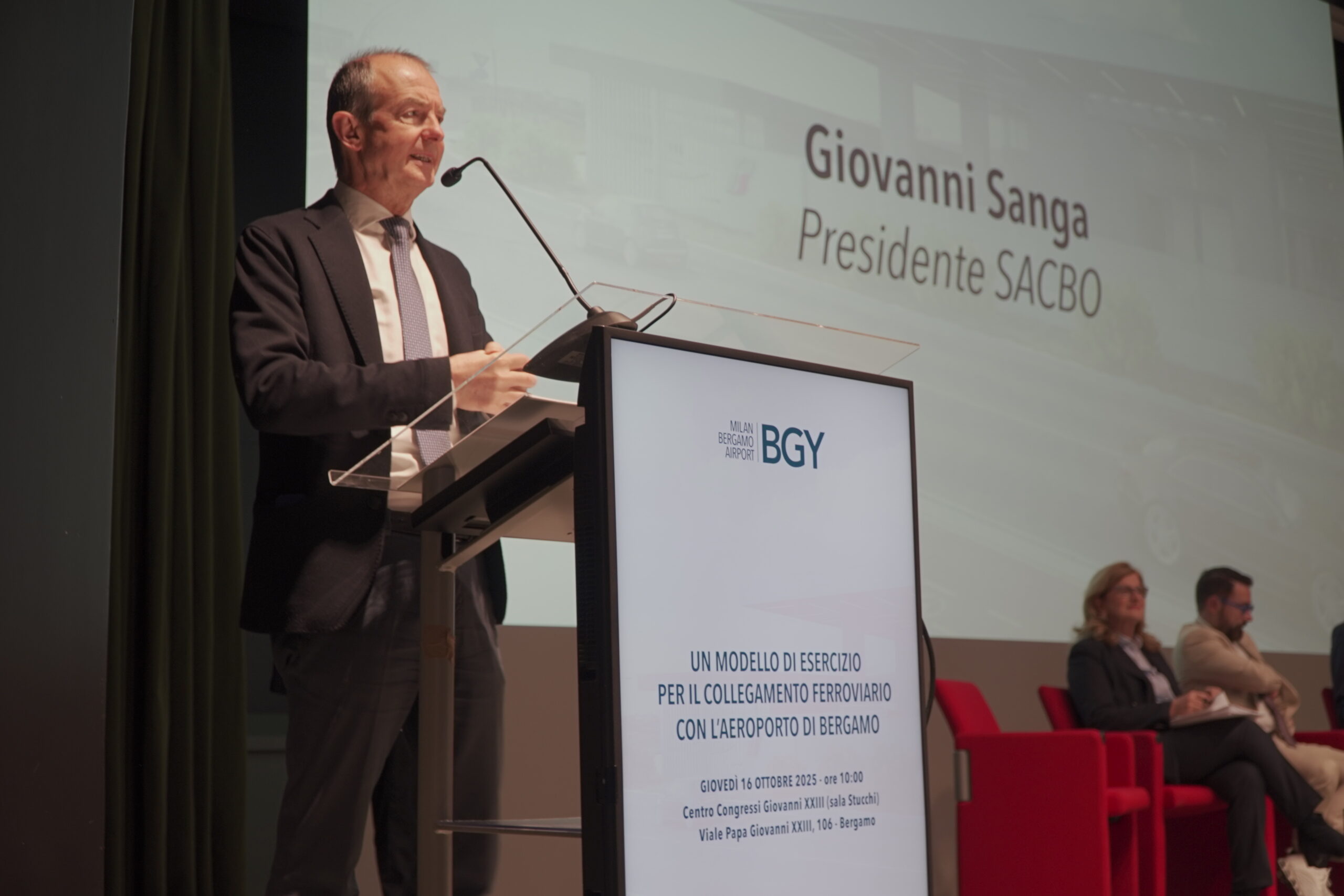 Il Centro Congressi Papa Giovanni XXIII ha ospitato oggi giovedì 16 ottobre il convegno promosso da Milan Bergamo Airport e CIFI (Collegio Ingegneri Ferroviari Italiani) sul tema “Un modello di esercizio per il collegamento ferroviario con l’Aeroporto di Bergamo”. Ad aprire i lavori Giovanni Sanga, Presidente SACBO, che ha sottolineato l’importanza del collegamento ferroviario come tassello fondamentale per un aeroporto sempre più accessibile, sostenibile e integrato con il sistema dei trasporti regionali.