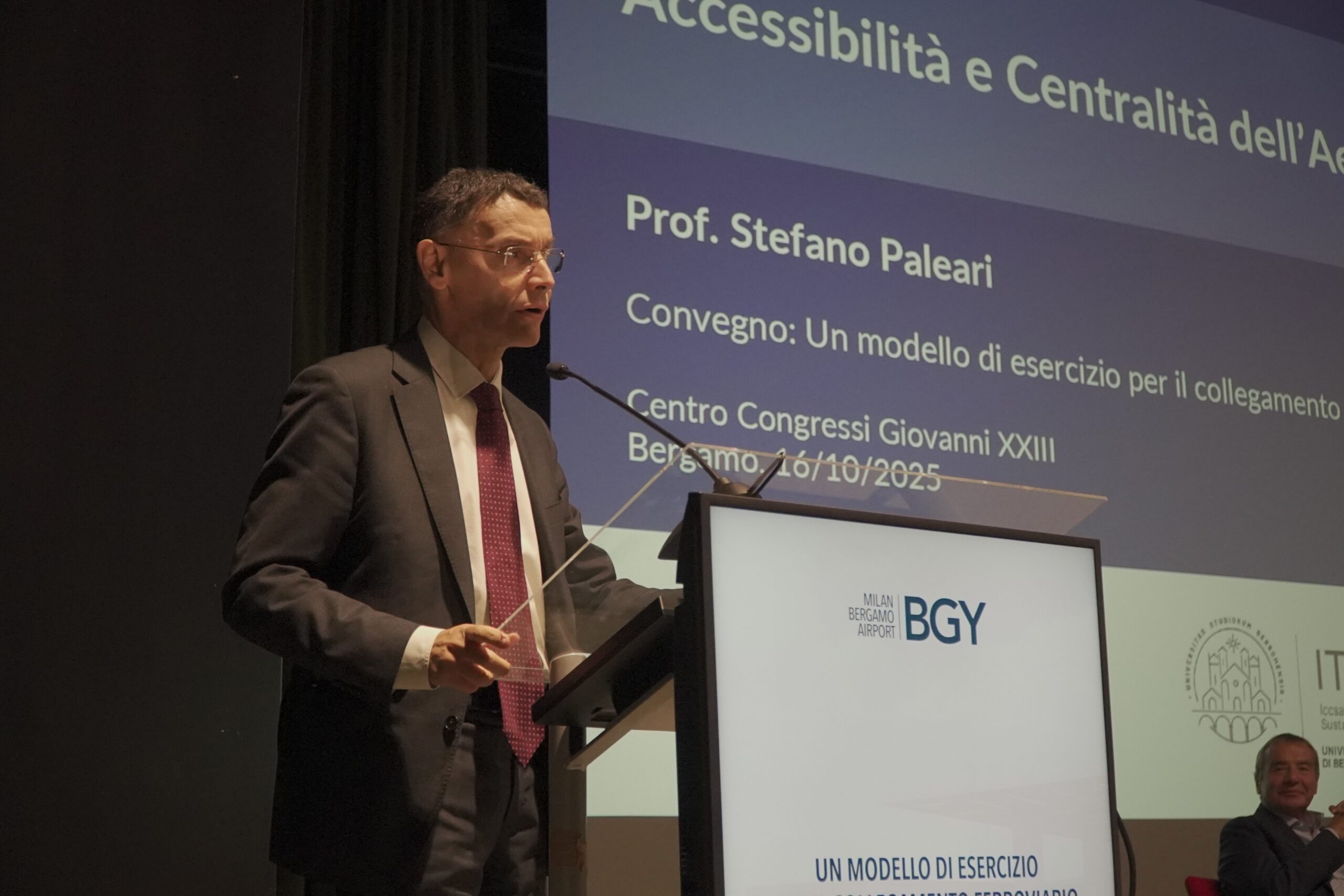 Il Centro Congressi Papa Giovanni XXIII ha ospitato oggi giovedì 16 ottobre il convegno promosso da Milan Bergamo Airport e CIFI (Collegio Ingegneri Ferroviari Italiani) sul tema “Un modello di esercizio per il collegamento ferroviario con l’Aeroporto di Bergamo”. Ad aprire i lavori Giovanni Sanga, Presidente SACBO, che ha sottolineato l’importanza del collegamento ferroviario come tassello fondamentale per un aeroporto sempre più accessibile, sostenibile e integrato con il sistema dei trasporti regionali.