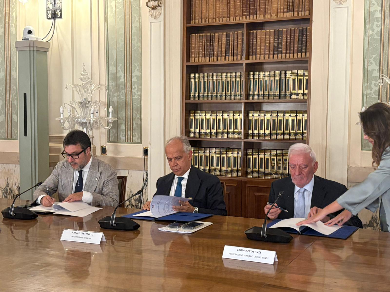A sottoscrivere l’intesa sono stati: Matteo Salvini vicepresidente del Consiglio e Ministro delle Infrastrutture e dei Trasporti, Matteo Piantedosi Ministro dell’Interno ed Egidio Provenzi presidente dell’Associazione Ragazzi On The Road.