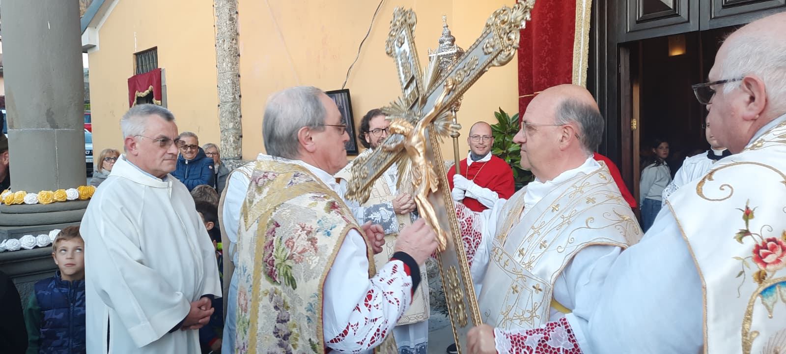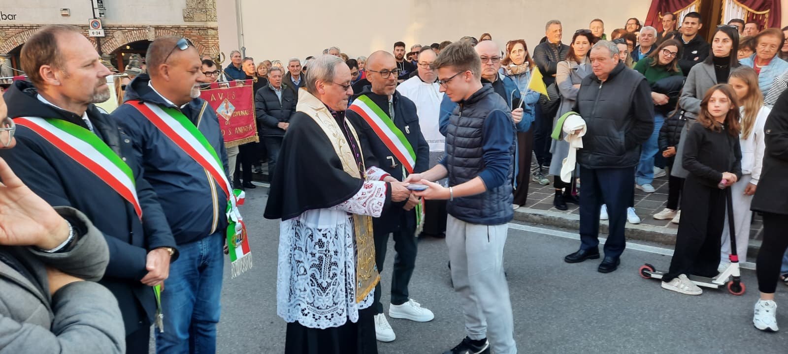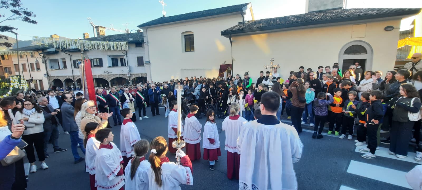 Un benvenuto caloroso, ricco di reciproca emozione e trepidante attesa. Nel pomeriggio di domenica 26 ottobre la comunità di Cazzano S.Andrea ha dato il benvenuto al nuovo parroco don Elio Mistri. Ad accoglierlo come tradizione presso il ponte di via Papa Giovanni c’era il paese intero, rappresentato dal sindaco Sergio Spampatti, dai vessili di tutte le associazioni, da bambjni, docenti e famiglie della Scuola Materna parrocchiale, dai giovani dell’Oratorio e da tantissimi fedeli. A salutare don Elio anche il sindaco di Vertova, suo paese natale, Riccardo Cagnoni e quello di Torre de Roveri, dove è stato parroco per ben 27 anni.