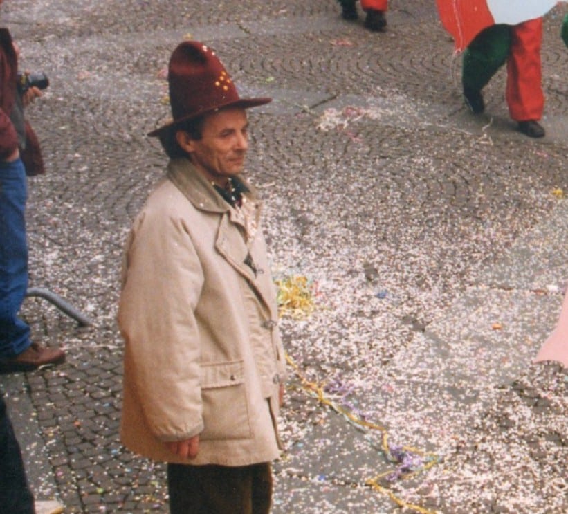 Nella foto Tito durante una sfilata di Carnevale degli anni 90 con il vero cappello da Baradello.