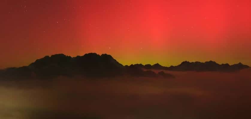 Molte segnalazioni parlano di una luminosità rossastra o violacea verso l’orizzonte settentrionale. Questo colore è tipico quando l’aurora appare a latitudini più basse, dove l’energia delle particelle solari è spesso meno intensa rispetto alle aurore classiche ai poli.