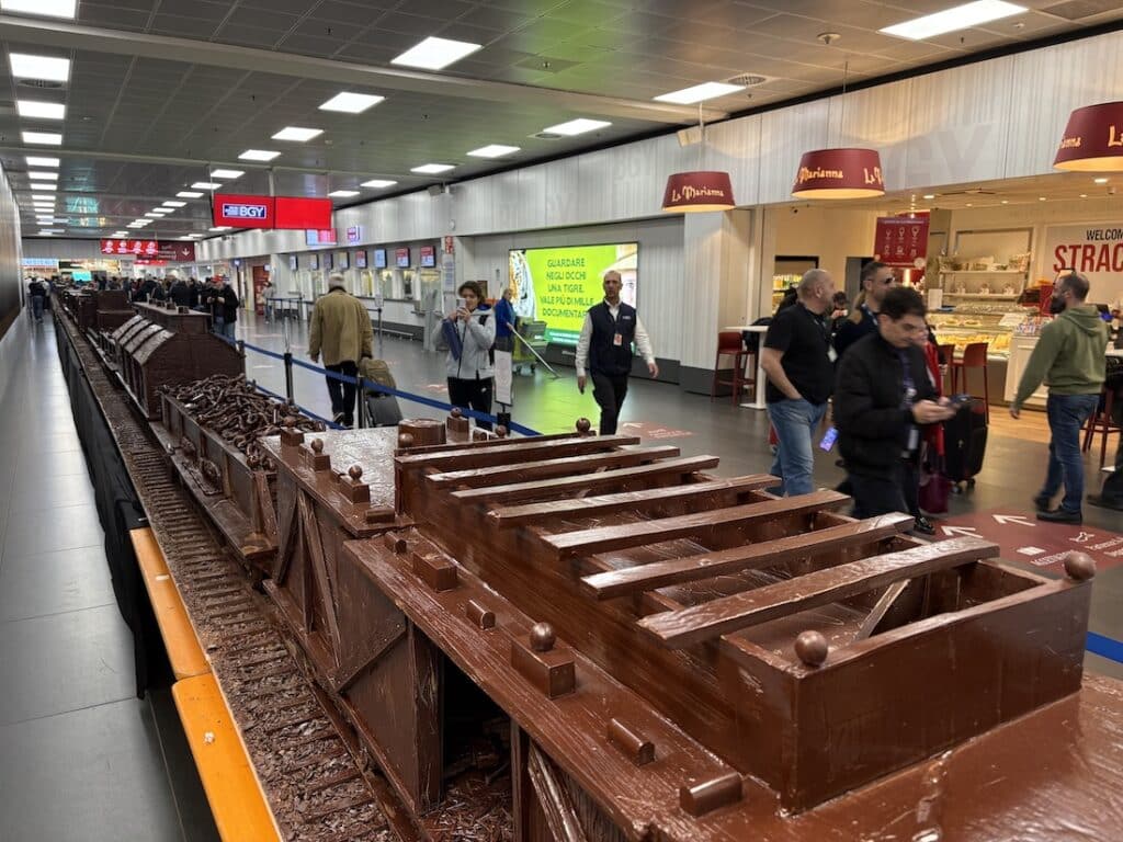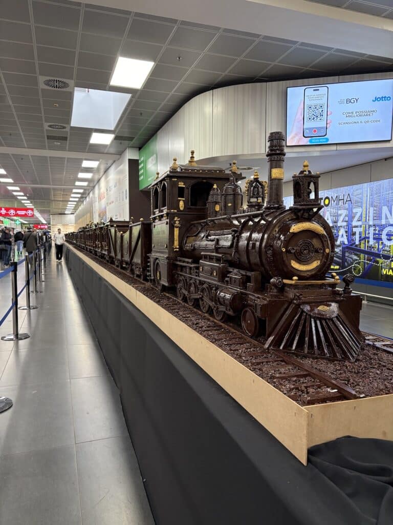 Il treno di cioccolato da record in esposizione all’aeroporto di Bergamo fino al 20 febbraio