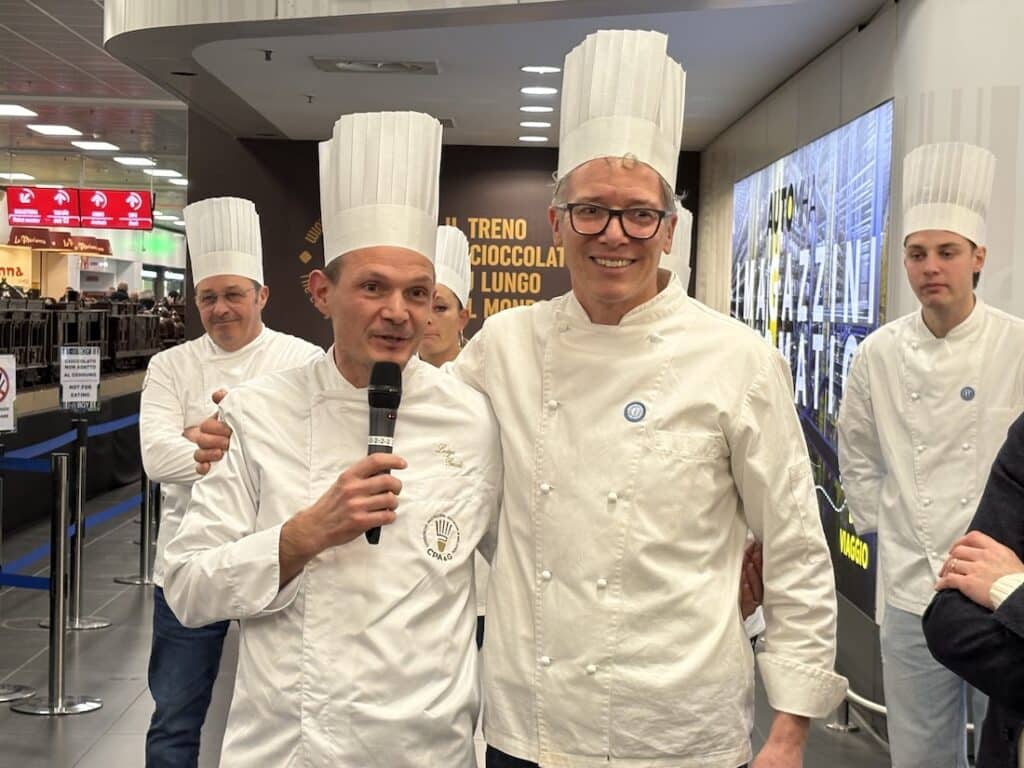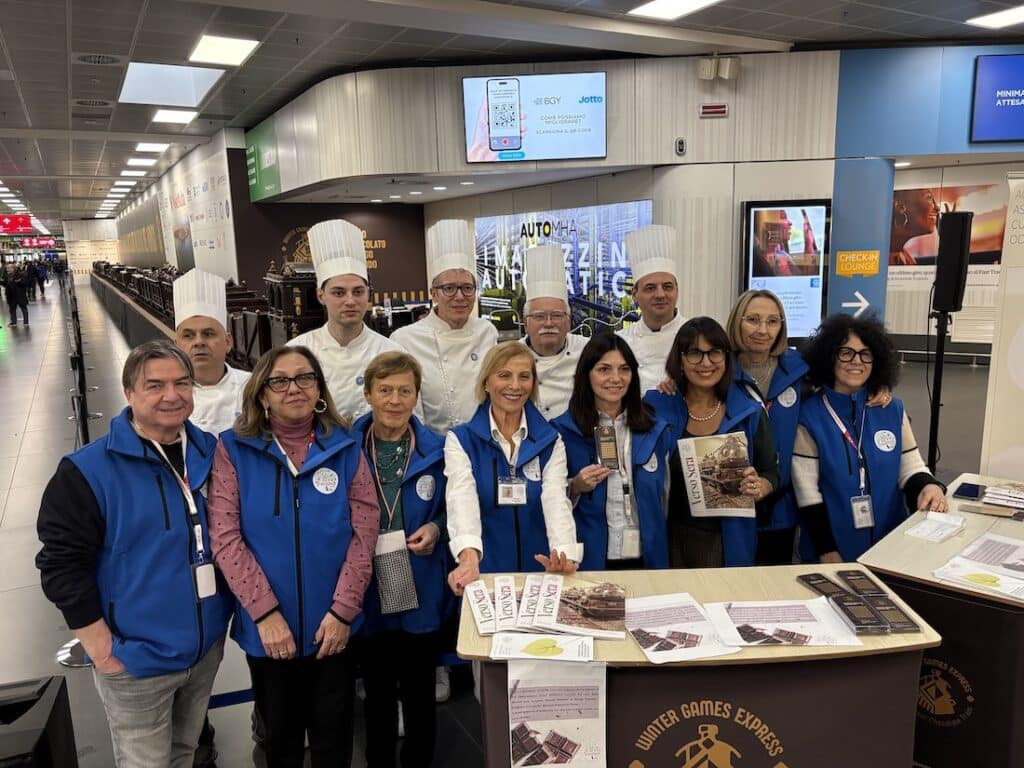 Con i suoi 55,27 metri di lunghezza e 28 quintali di cioccolato, il treno di cioccolato più lungo del mondo accoglierà fino al 20 febbraio passeggeri e visitatori all’interno dello scalo, trasformando l’aeroporto in uno spazio espositivo d’eccezione, in vista dei Giochi Olimpici e Paralimpici Invernali di Milano Cortina 2026.