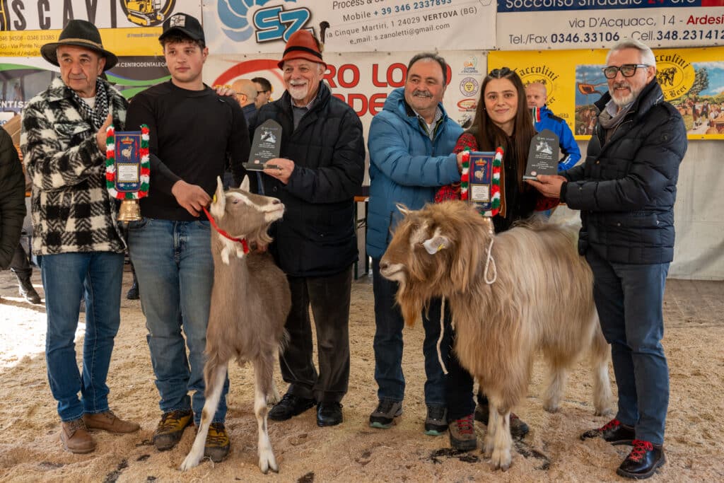 La Regina della Fiera è la giovane capra Sia dell’allevatore Nicolò Rizzi di Cene, il più giovane tra i presenti, classe 2005, che ha raccolto il testimone dell’azienda della mamma. Rizzi aveva già vinto nel 2023 con la capra Beth ed aveva vinto anche nel 2020 con il miglior becco. Alla prima partecipazione alla fiera di Ardesio l’azienda Fabio Rota (Almenno san Bartolomeo) ha conquistato il premio di Re della Fiera con il becco Zucco, un esemplare adulto di due anni di razza bionda dell’Adamello.