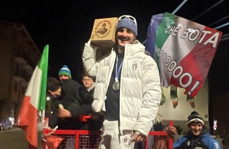 Grande festa a Castione della Presolana per il ritorno del suo campione Federico Tomasoni medaglia d’Argento alle Olimpiadi di Milano Cortina