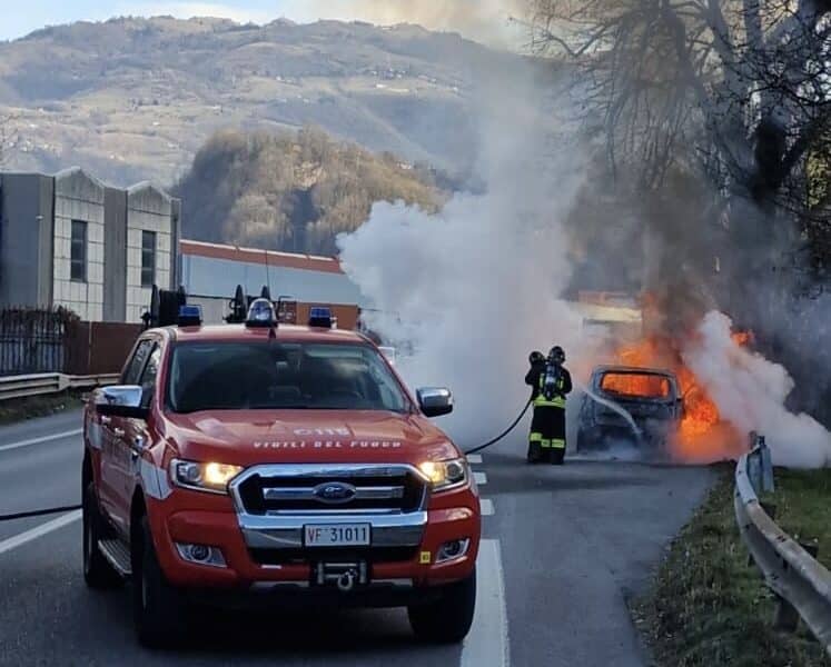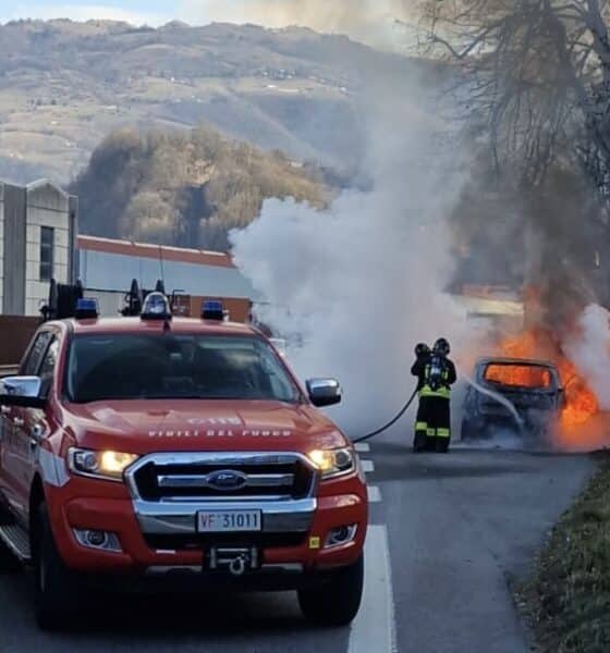 Intervento dei soccorsi nel tratto di Statale 671 a Fiorano al Serio: un'auto è finita fuori strada, nel fosso laterale alla carreggiata